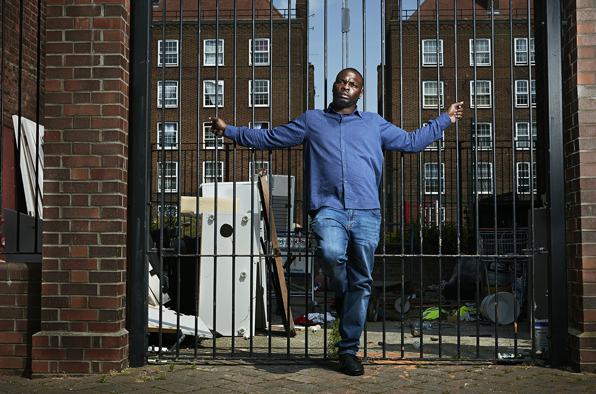 Jude met ex-gangster Gwenton Sloley to take his portrait for an article about the rise of knife crime in Hackney. Sloley has been to prison in the past for armed robbery but now advises the government with their approach to knife crime.